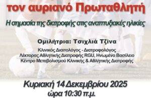 Eπιμορφωτική Ημερίδα με θέμα: Πως ανατρέφω τον αυριανό Πρωταθλητή – Η σημασία της διατροφής στις αναπτυξιακές ηλικίες